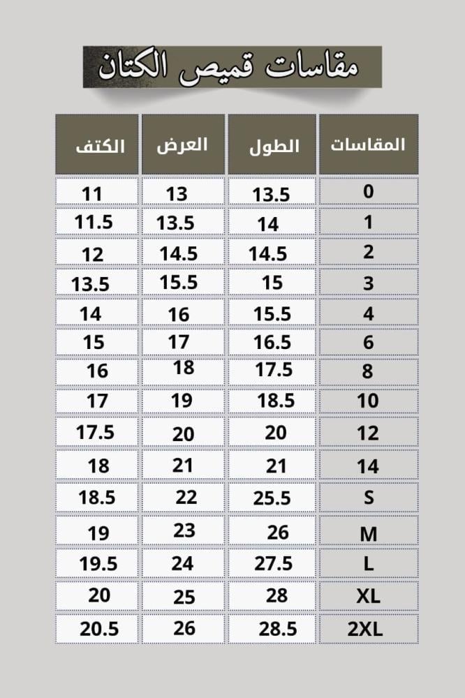 • مقاسات الاطفال ( من 2 الى 14 ) .